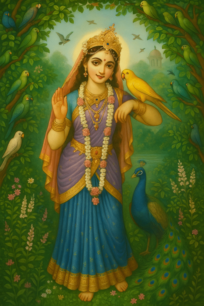 Nārada Muni preguntó el Señor Nairaṇa, “O Bhagaván! ¿cómo lo hicieron los puros y castos Tulasī ¿Devī se convirtió en tu esposa? ¿Dónde nació ella? ¿Quién era ella en su nacimiento anterior? ¿De qué familia venía? Y qué austeridades realizó ella para conseguirte como su marido: Tú, que estás por encima de la energía material, no sujeto al cambio, el Ser Cósmico, el Dios Supremo, el Señor de todos, omnisciente, la causa de todos, omnipresente, contenedor y preservador de todos. Y cómo lo hizo Tulasī Devī, tu diosa principal, ¿conviértete en un árbol? Oh Tú que resuelves todas las dudas, mi mente tiene curiosidad por saber todo sobre estos puntos; por eso me obliga a hacerte estas preguntas. Por favor elimina estas dudas de mi mente.”